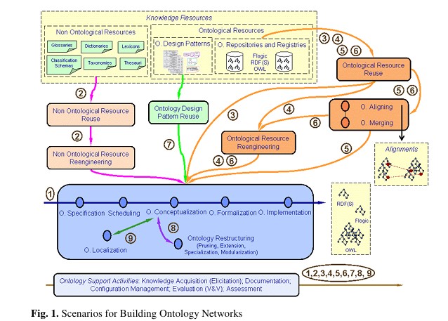 [4] Source : Gómez-Pérez, A., & Suárez-Figueroa, M. C. (2009). "NeOn Methodology for Building Ontology Networks: A Scenario-Based Methodology" Auteurs : Asunción Gómez-Pérez, Mari Carmen Suárez-Figueroa. Conférence : EKAW 2008 (Knowledge Engineering and Management). Lien https://oa.upm.es/5475/1/INVE_MEM_2009_64399.pdf